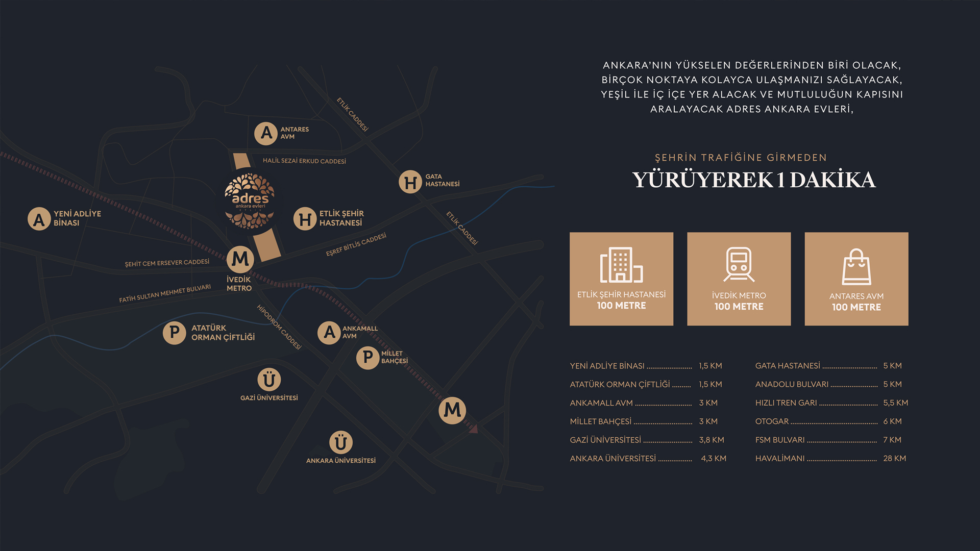 Adres Ankara Evleri, Etlik Şehir Hastanesi 1 dakikalık mesafede Ankara’nın en iyi yerleşim bölgelerinden biri olan Yenimahalle’de ayrıcalıklarla dolu bir yaşam sunuyor.