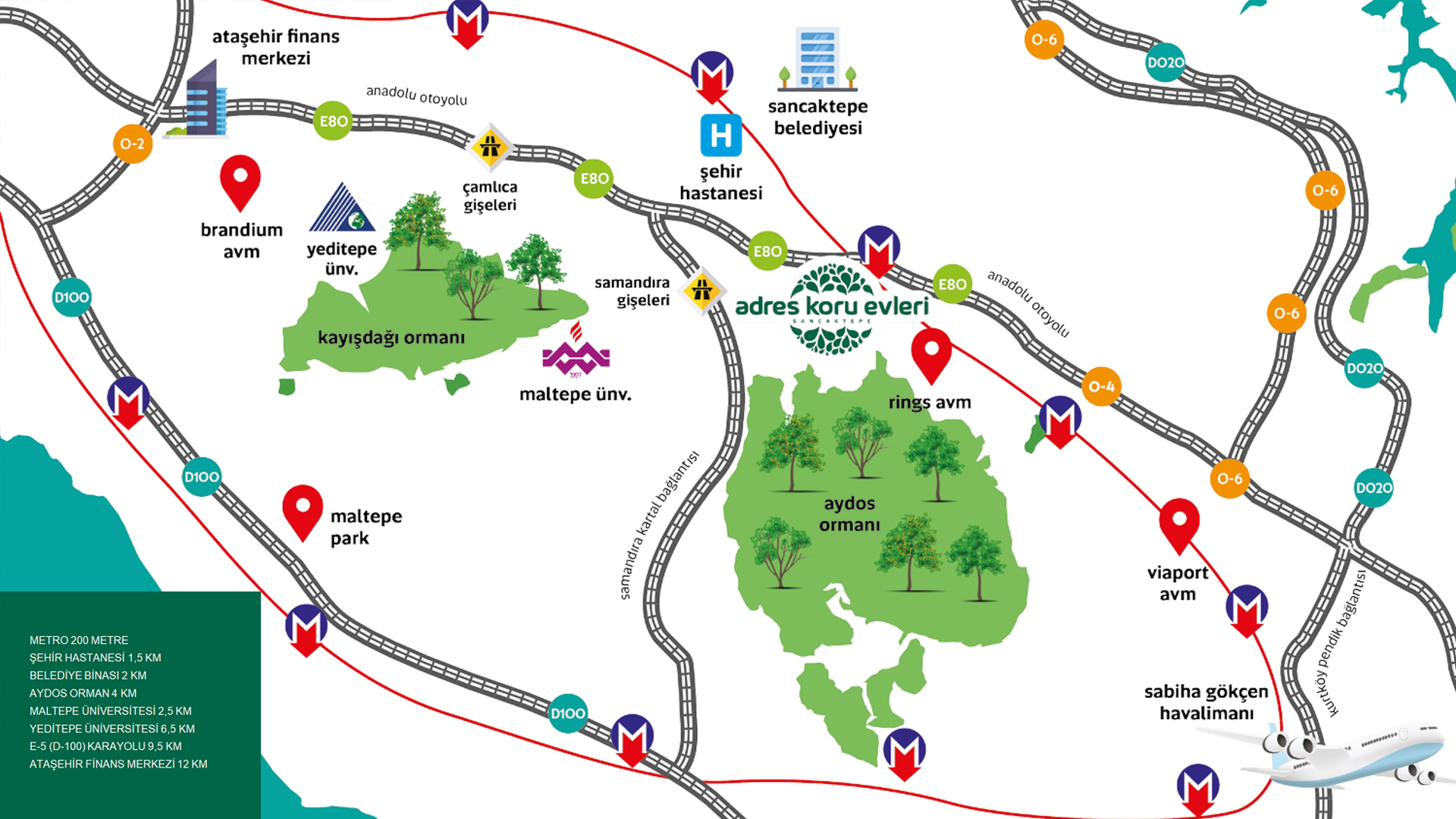 In Adres Koru Homes, we've built tranquility on solid foundations by constructing on rocky terrain. The adjacent forest, consisting of 40-year-old pine trees, is like a waterfall right next to your home, offering many privileges.